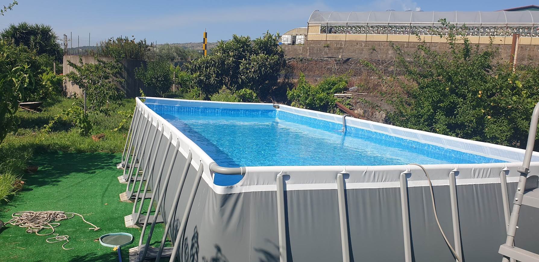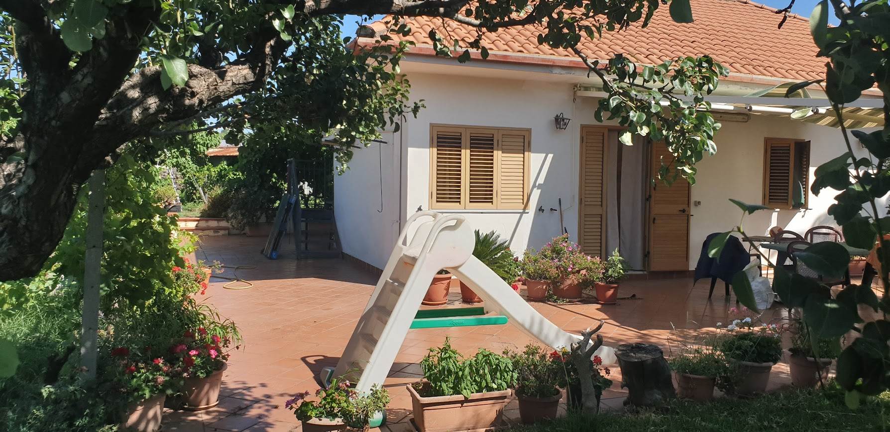 . La proprietà si distingue per la sua posizione privilegiata e la sua atmosfera rilassante, l'immobile di circa 120 metri quadrati, si sviluppa su quattro vani, cosi distribuiti, salone comunicante con la cucina, due camere da letto, un bagno, il tutto con affaccio al cortile circonstante, completa l'immobile il garage, è circondato da un curatissimo giardino che regala pace e tranquillità, dove è stata montata una piscina fuori terra ,ed è stata attrezzata un area attorno la piscina con doccia ( a corredo del giardino insiste una vasca per l'acqua di irrigazione e di un deposito per gli attrezzi) , il tutto a due passi da tutti i principali servizi, questa villa rappresenta la soluzione ideale per chi desidera un rifugio elegante e confortevole immerso nella natura. L'immobile è in vendita completo di tutti i mobili e tutta l'attrezzatura per la manutenzione del giardino,